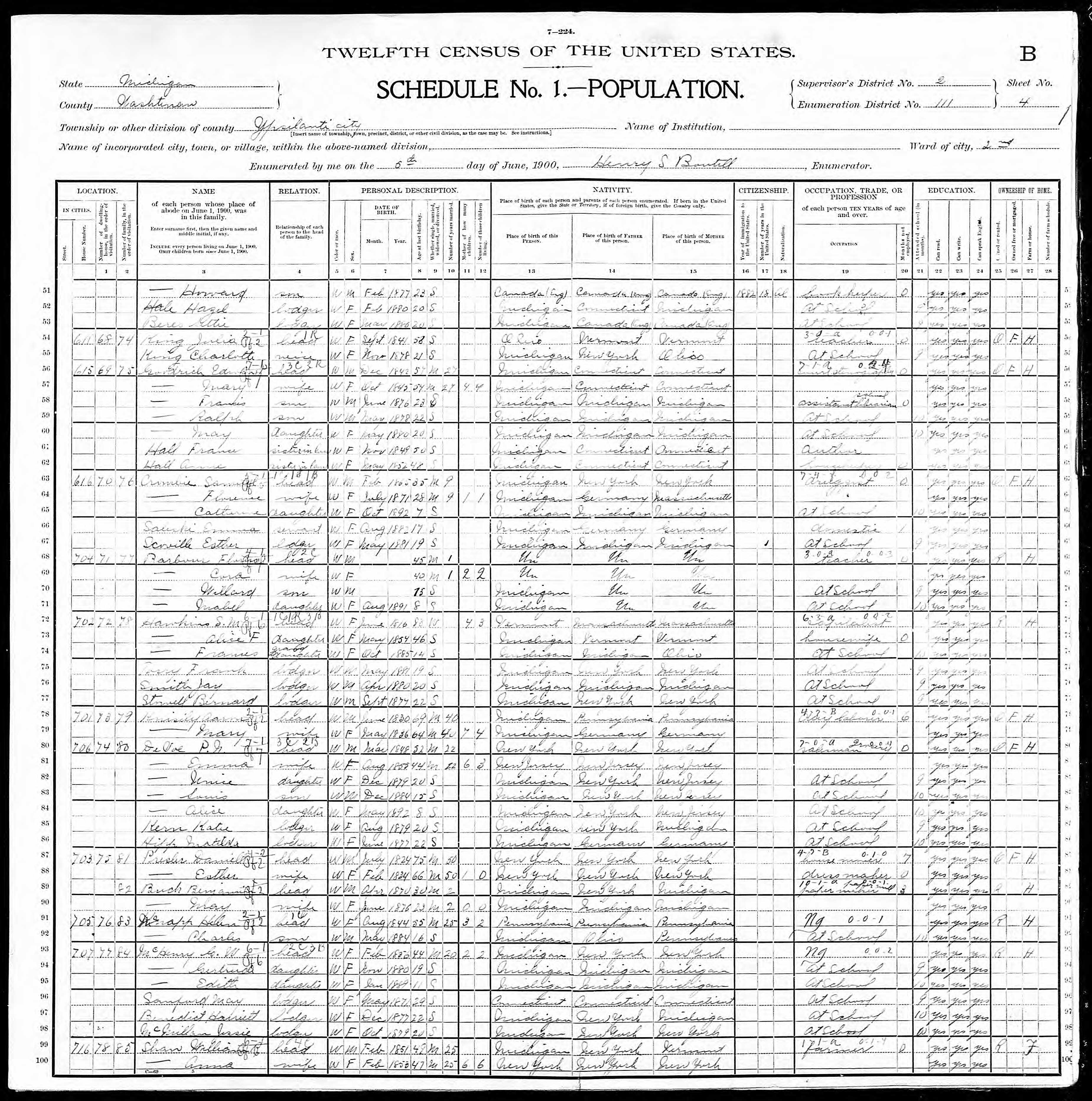 1900 Census Ypsilanti, Washtenaw County, Michigan