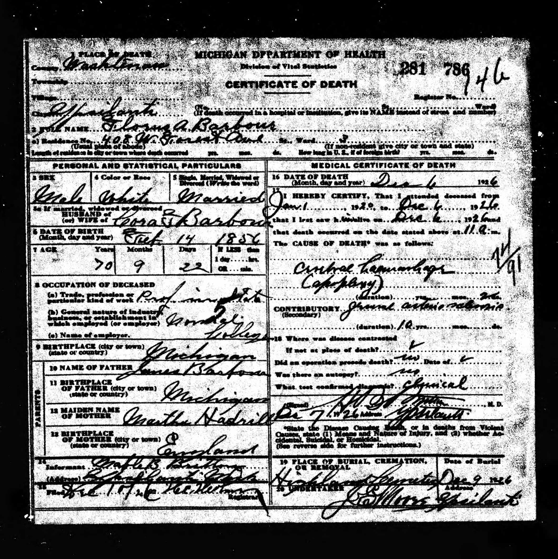 Died: Dec 6, 1926 at Ypsilanti, Washtenaw County, Michigan