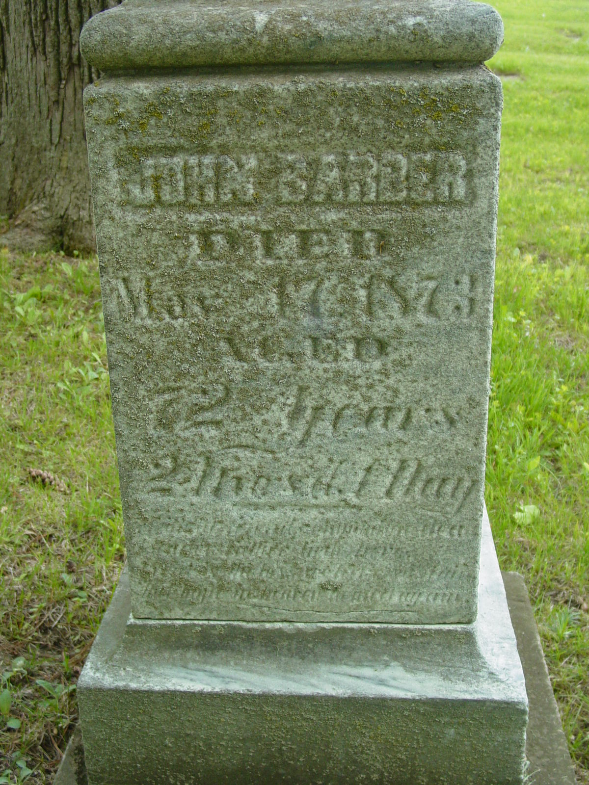 Died: Mar. 17, 1873 at Oxford Twp., Oakland County, Michigan