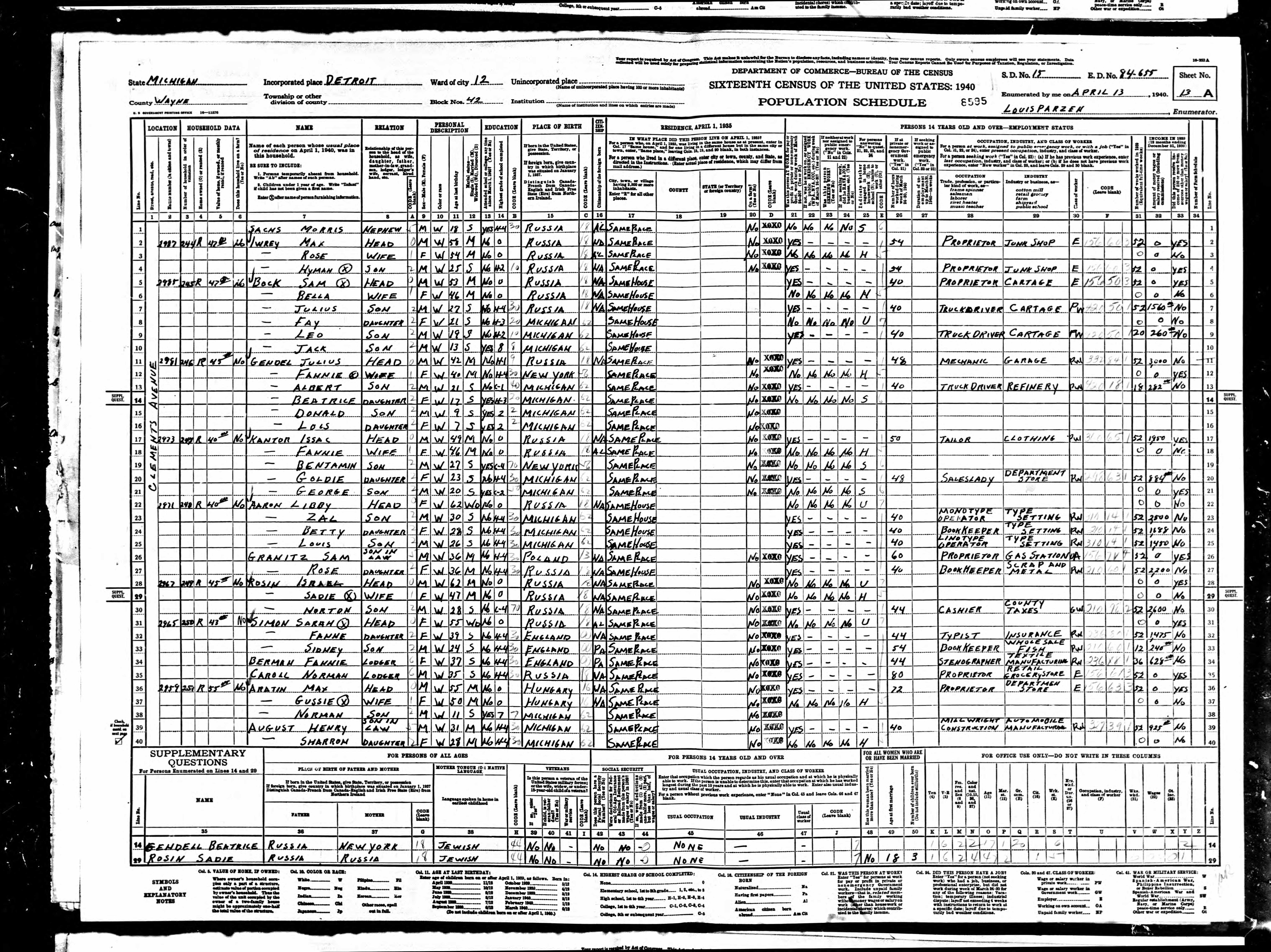 1940 Census Detroit, Wayne County, Michigan