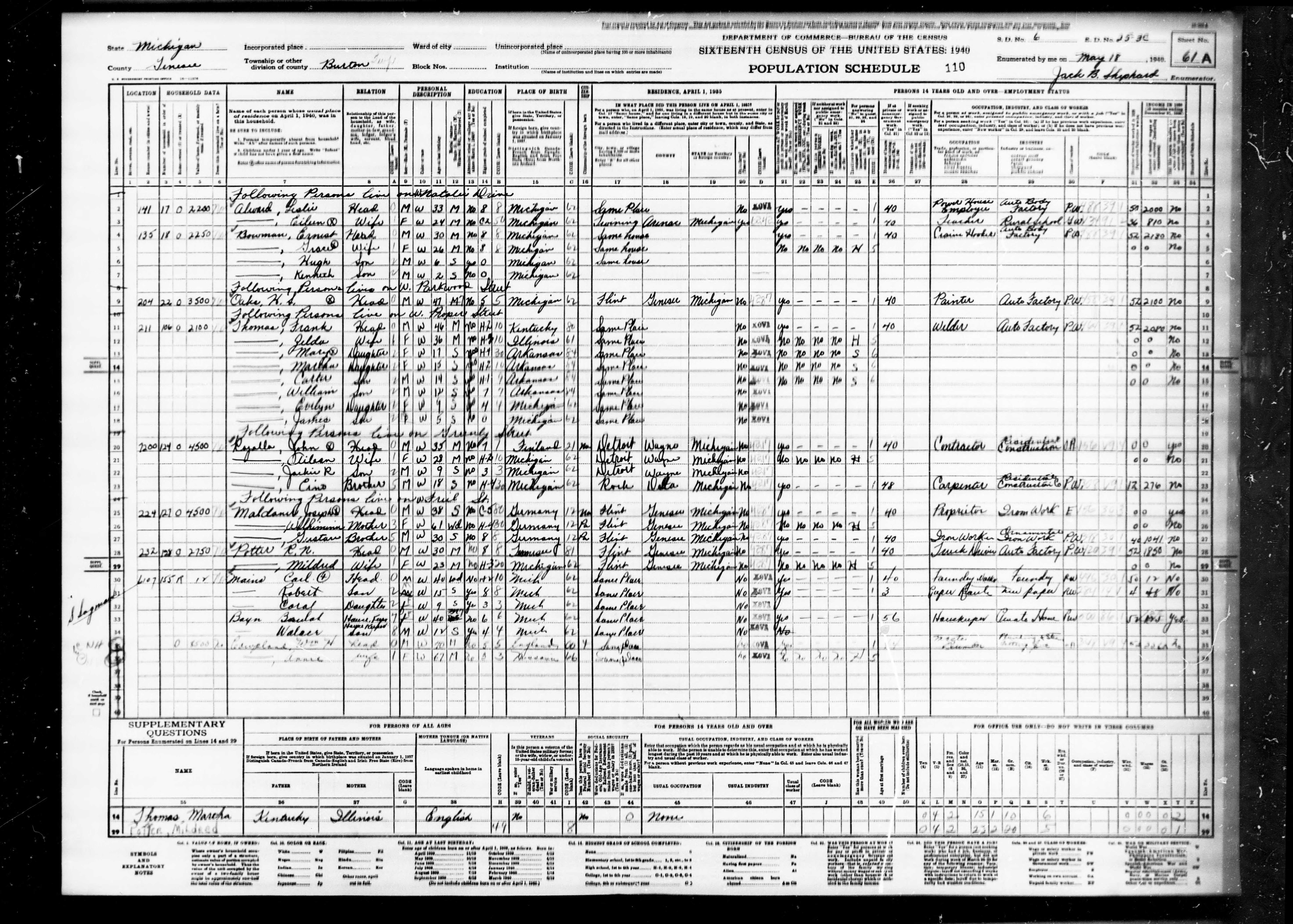 Death Date - Michigan, U.S., Death Index, 1971-1996 |