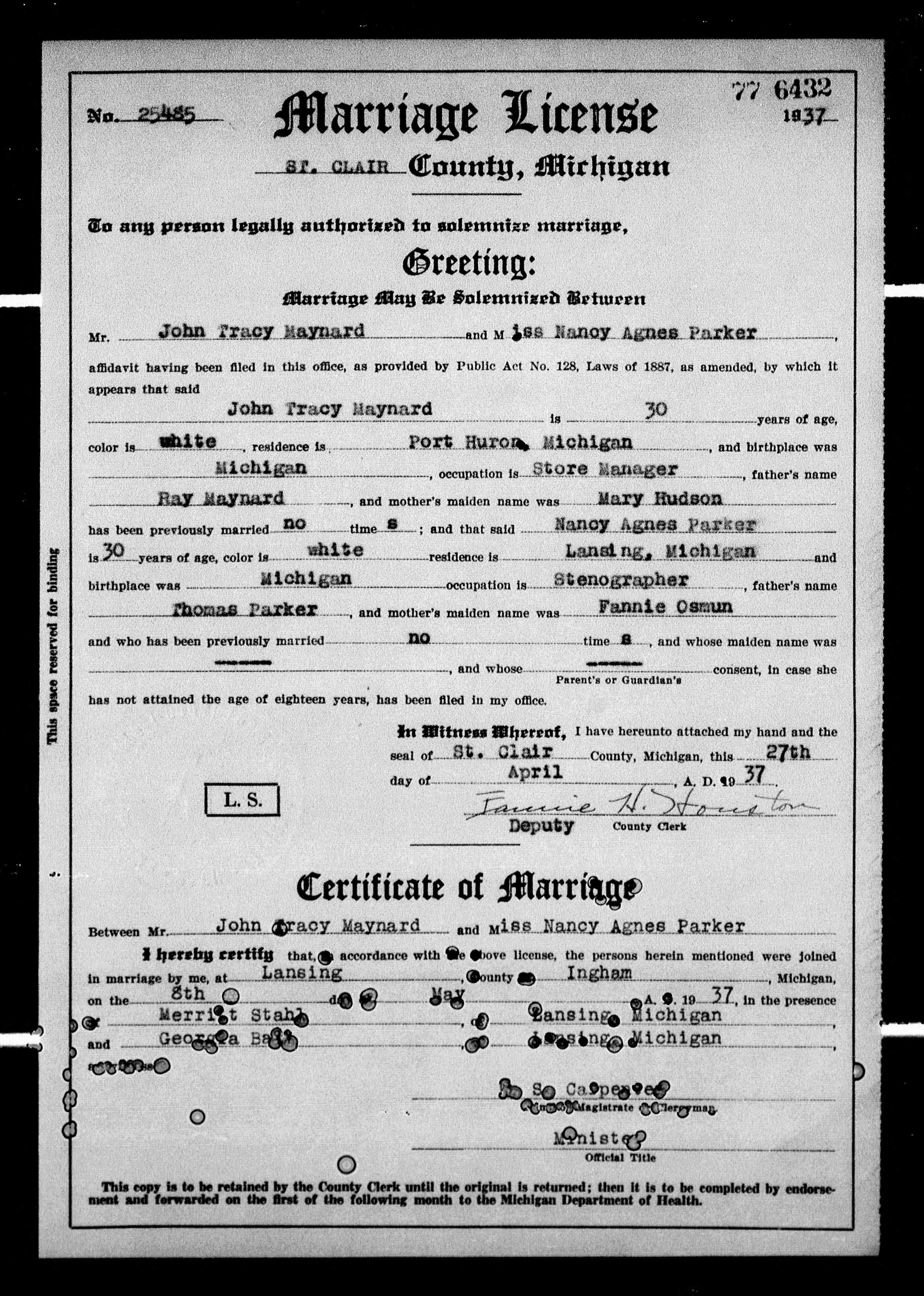 Born: Jan 14, 1907 at Clarkston, Oakland County, Michigan