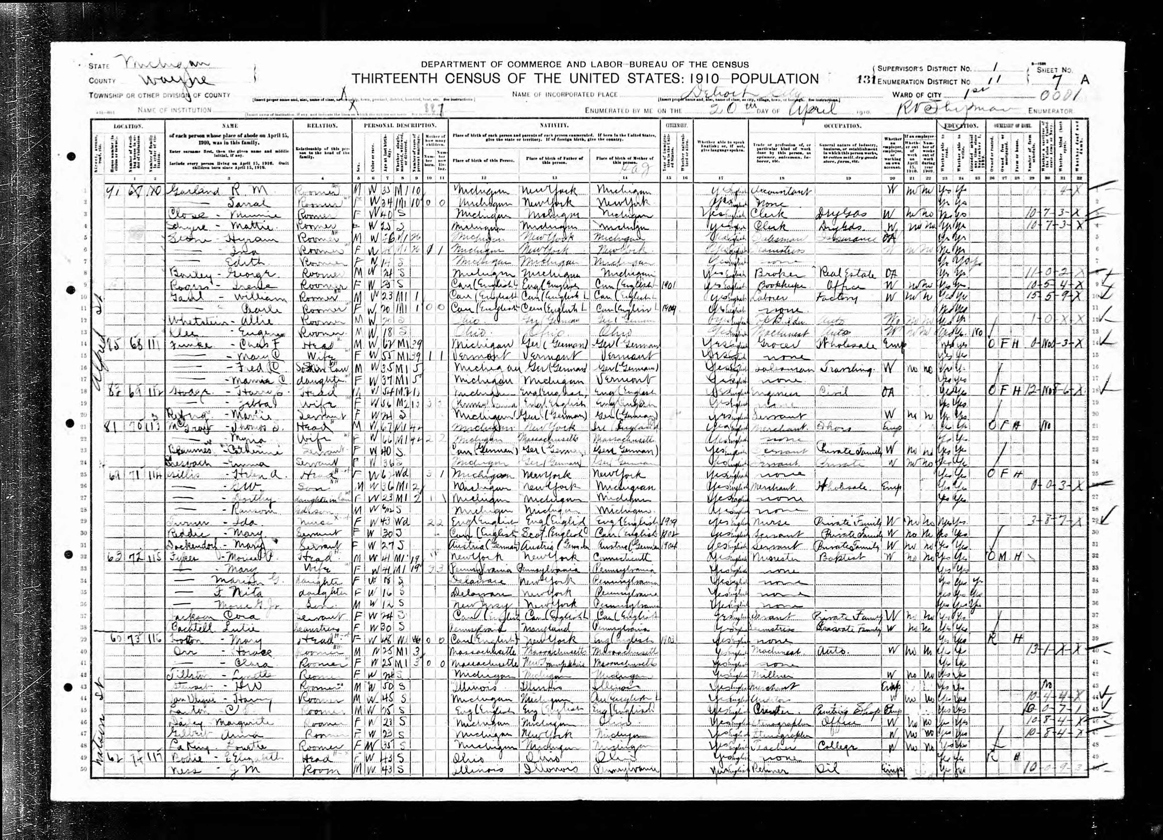 - 1910 Census Detroit, Wayne County, Michigan