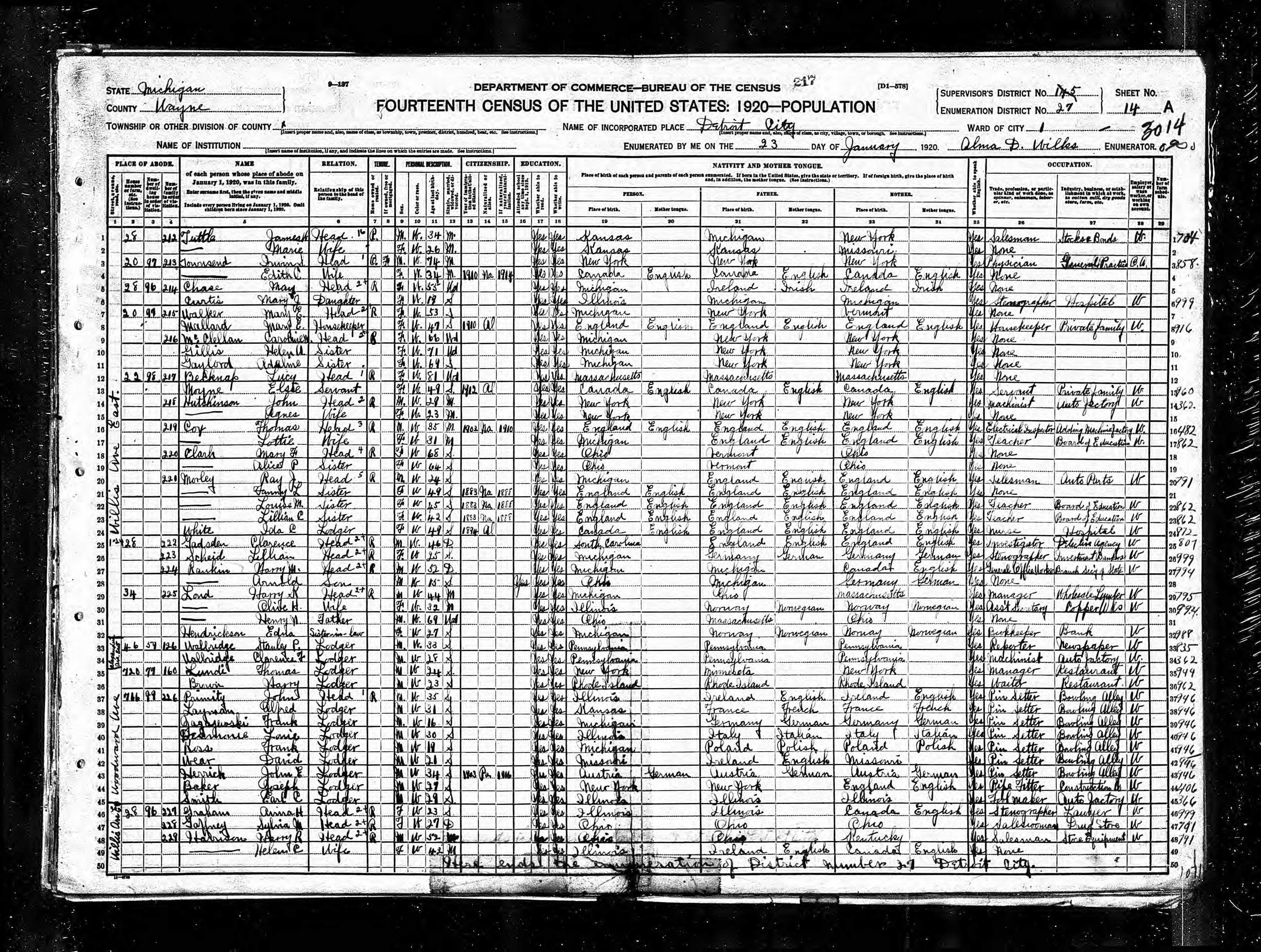 - 1920 Census Detroit, Wayne County, Michigan