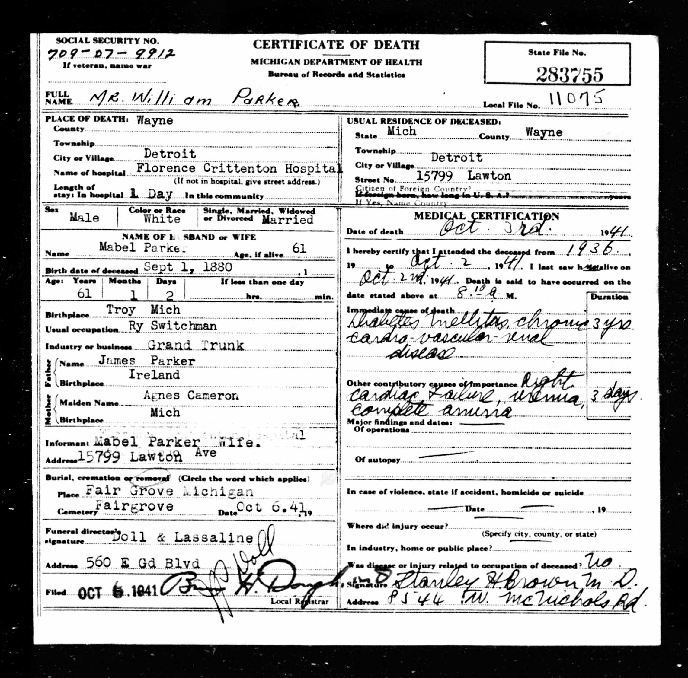 Died: Oct 3, 1941 Detroit, Wayne County, Michigan